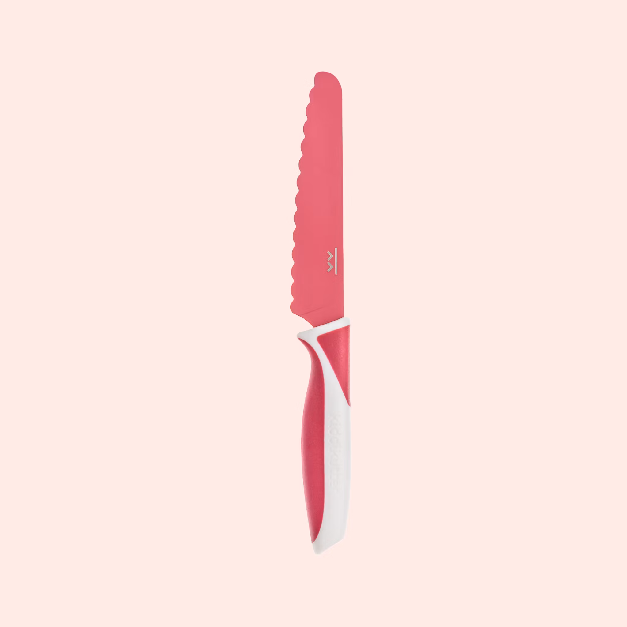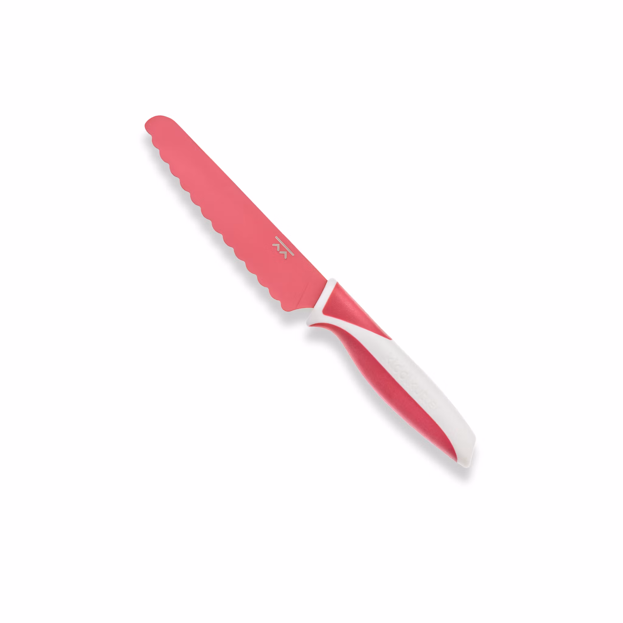 Unik barnkniv som liknar en vanlig vuxenkniv men med den stora skillnaden att den är anpassad i storlek till barn och att den inte går att skära sig på. Tack vare sitt unika patenterade blad med rundade tandningar skär kniven effektivt genom mat med en sågrörelse då den bibehåller kontakten med matens yta. Detta minskar ansträngningen som krävs för att skiva, tärna och hacka.