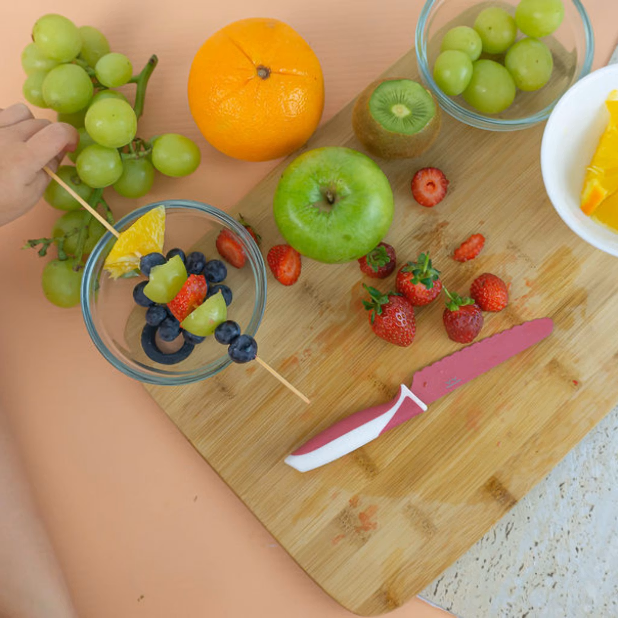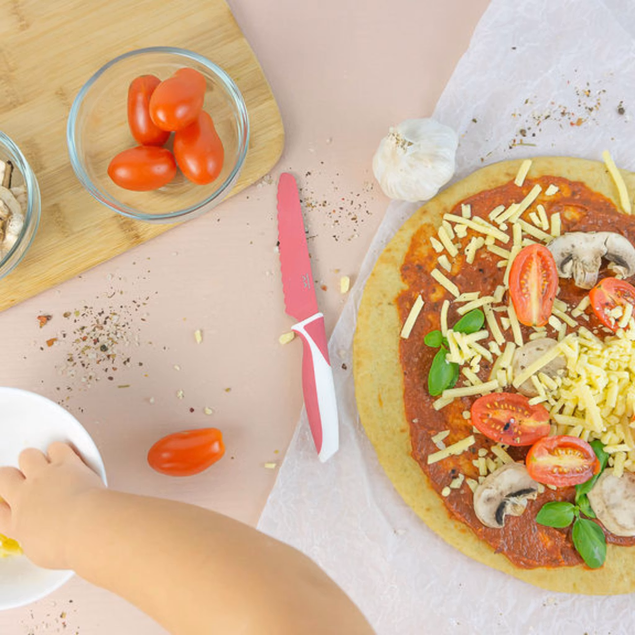 Kiddikutters barnkniv är 100% livsmedelssäker, fri från BPA och tillverkad av ett högkvalitativt rostfritt stålblad med nonstick-beläggning och ett gjutet handtag som är lätt för barn att greppa. Designad för barn som är såväl vänster- som högerhänta. Rekommenderas till barn från 3 år+. En perfekt present att ge bort till din lilla hjälpreda i köket.
