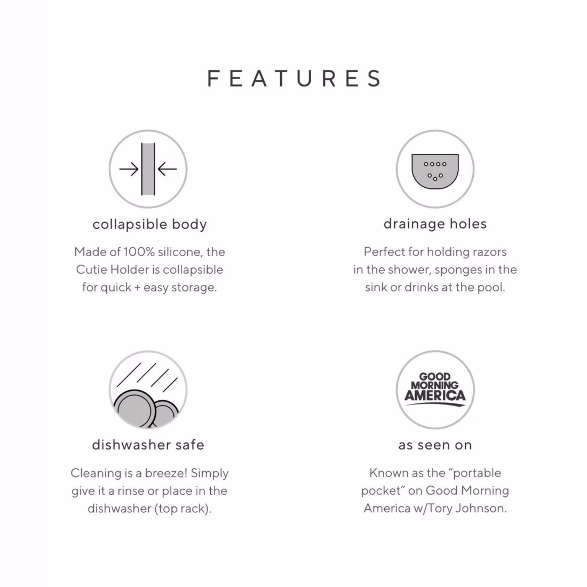 Extra bra är att hållaren har små dräneringshål i botten, vilket gör den lätt att hålla fräsch när man t ex använder den utomhus eller i badrummet.