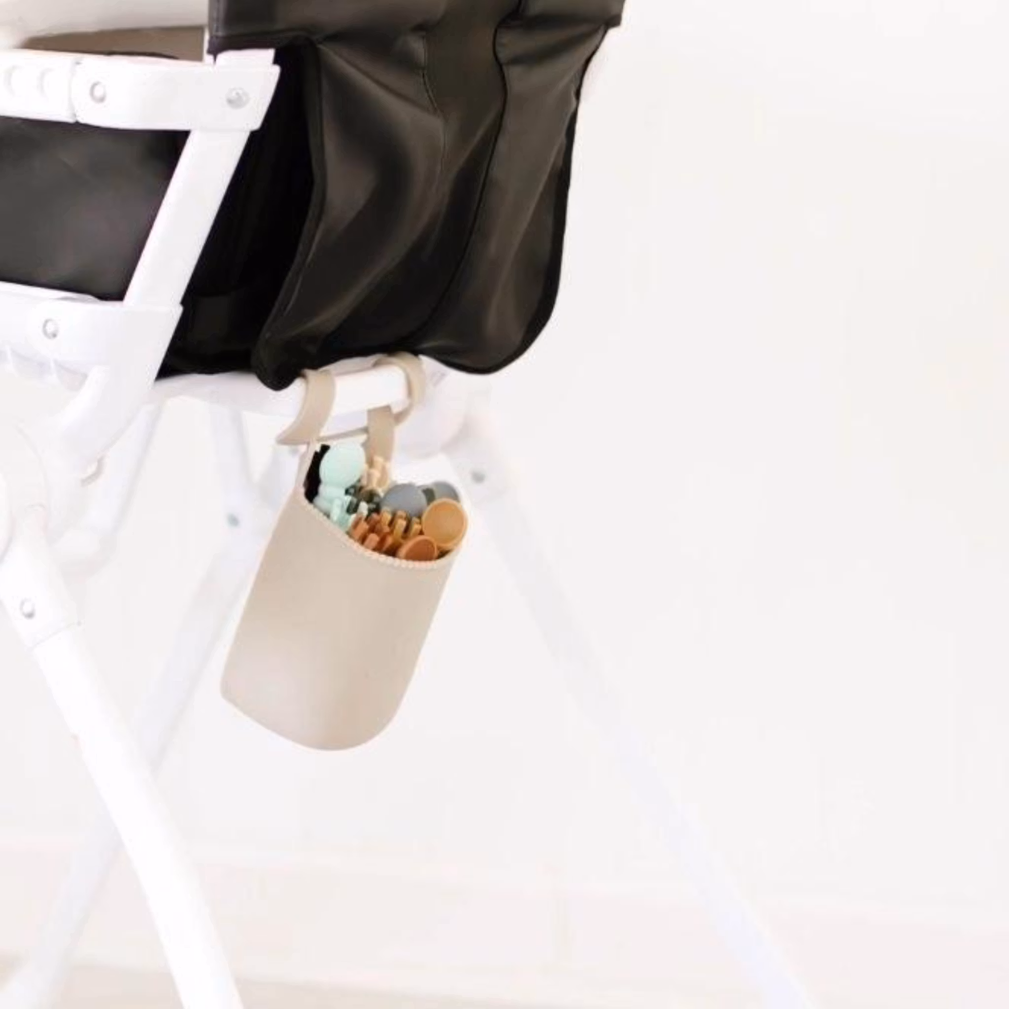 Universal hållare som passar att förvara t ex vattenflaskan, kaffetermosen, nycklarna mm. Ypperlig att fästa på barnvagnen, cykeln eller matstolen.