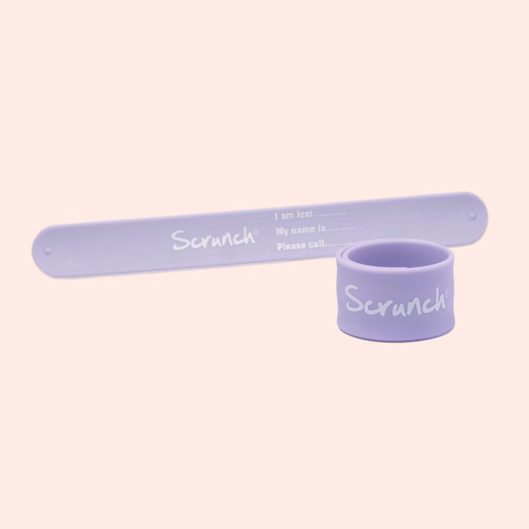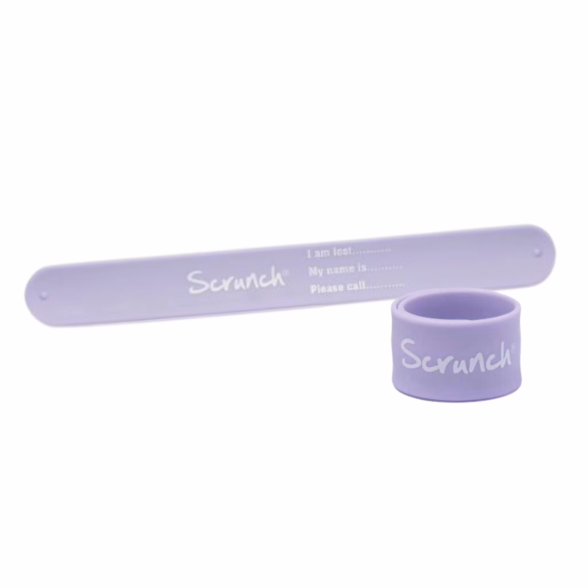 Infoband för barn 3+ år med utrymme att fylla i namn och telefonnummer. Lämpar sig ypperligt på resan eller utflykten. Till skillnad mot många andra ID-band för barn erbjuder Scrunch en stilren design som kan användas såväl som armband som ID-tag till att märka upp saker t ex resväskan, barnvagnen, vattenflaskan, gympapåsen etc.