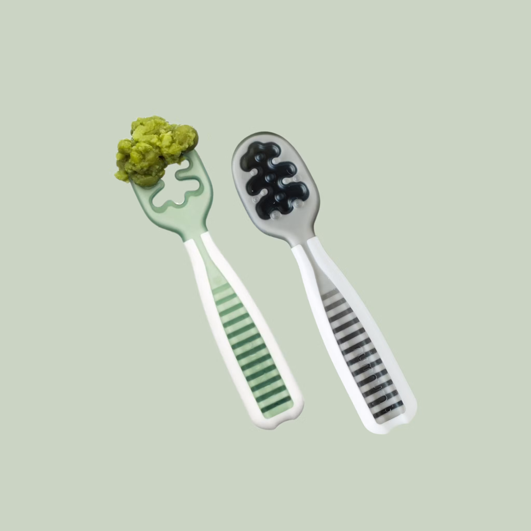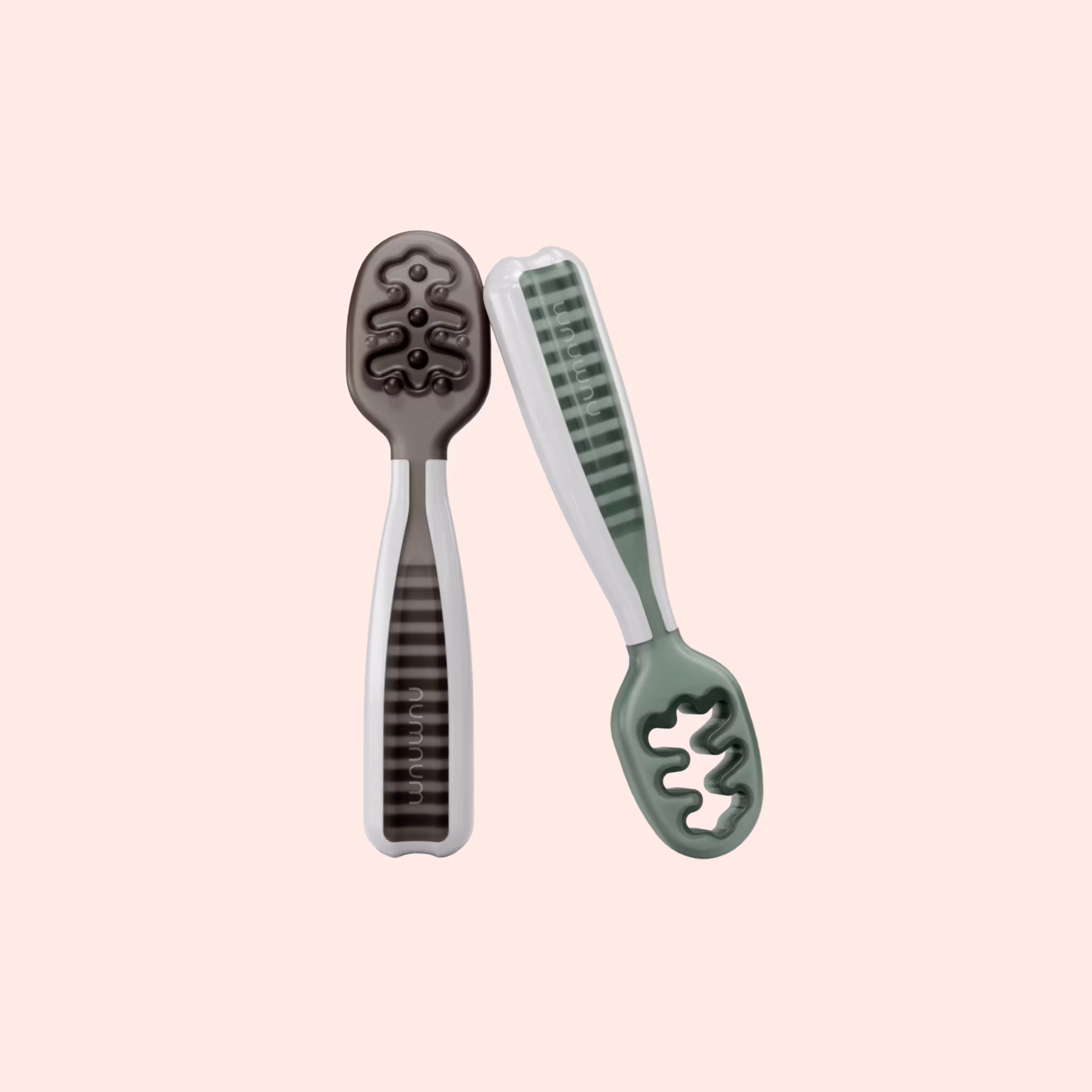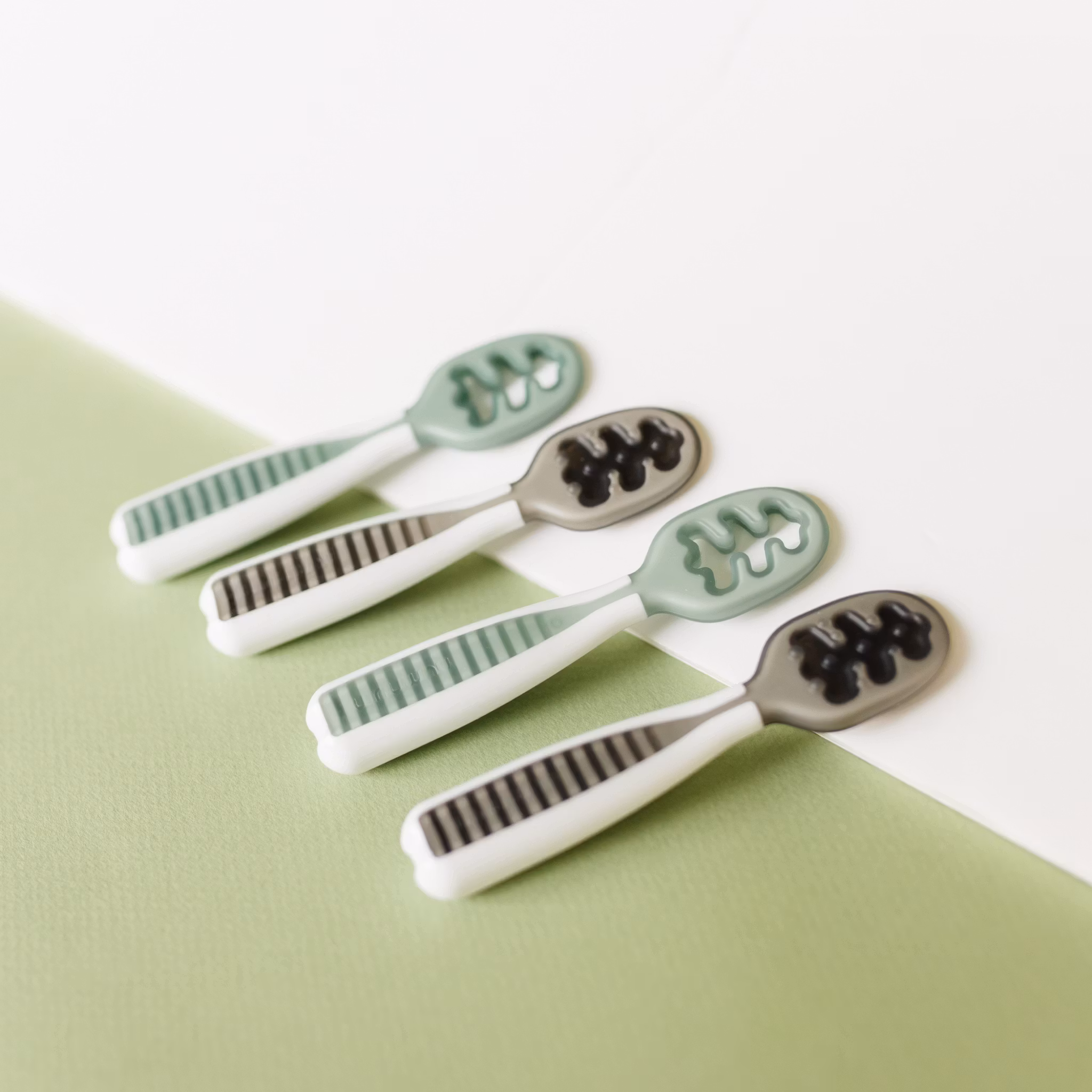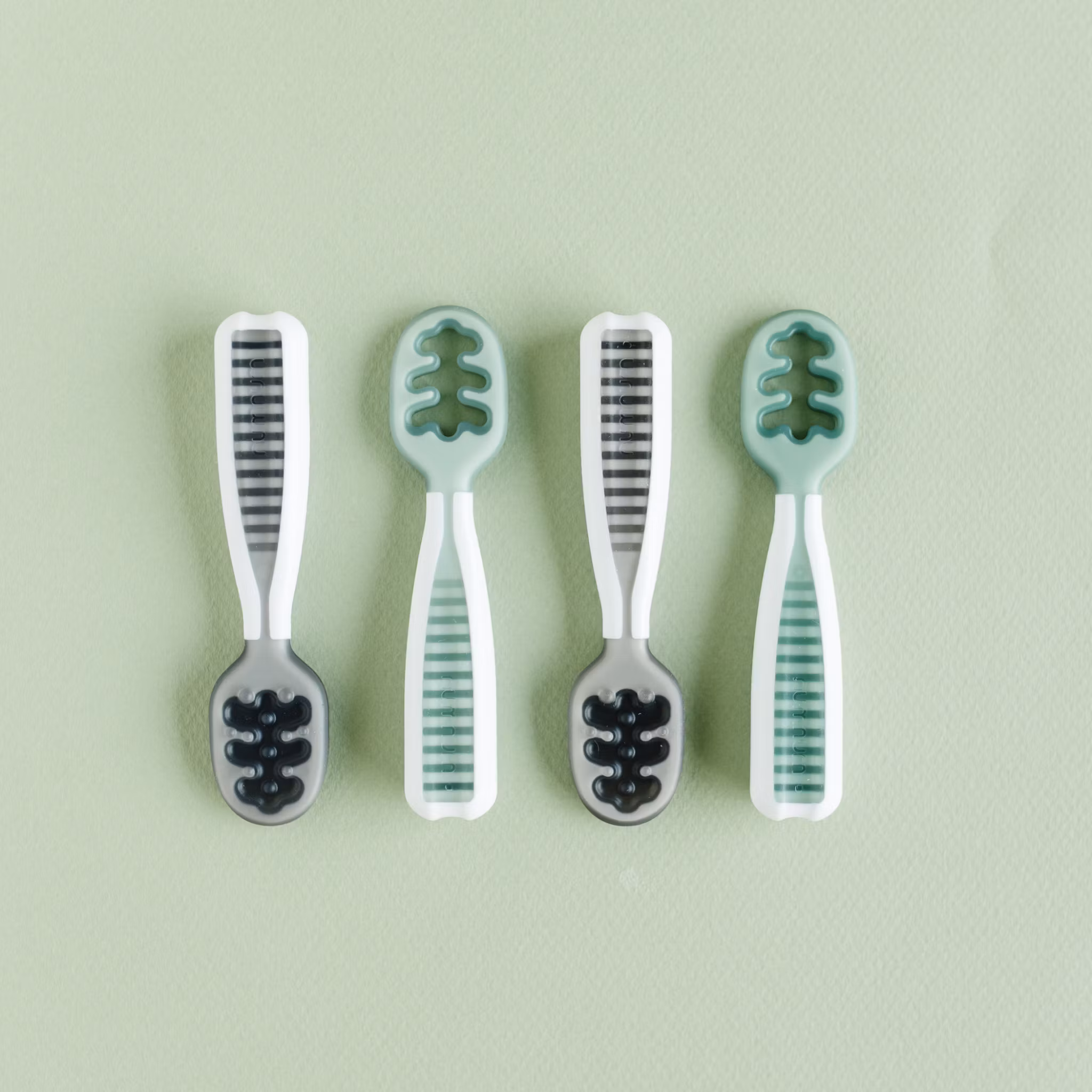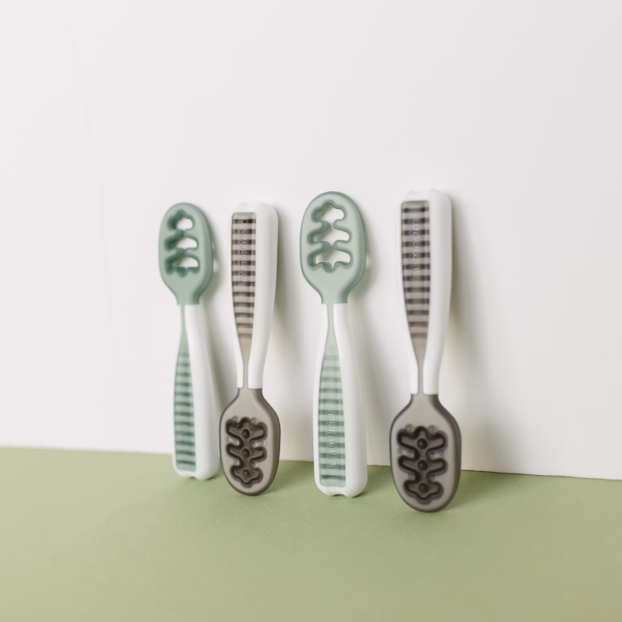 Pre spoons/nybörjarskedar som lämpar sig både till tunnare och tjockare konsistenser av mat. Till bebisar från 6+ månader.