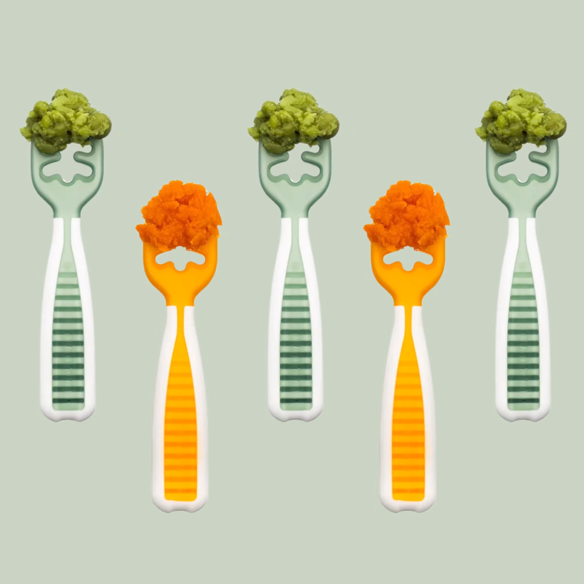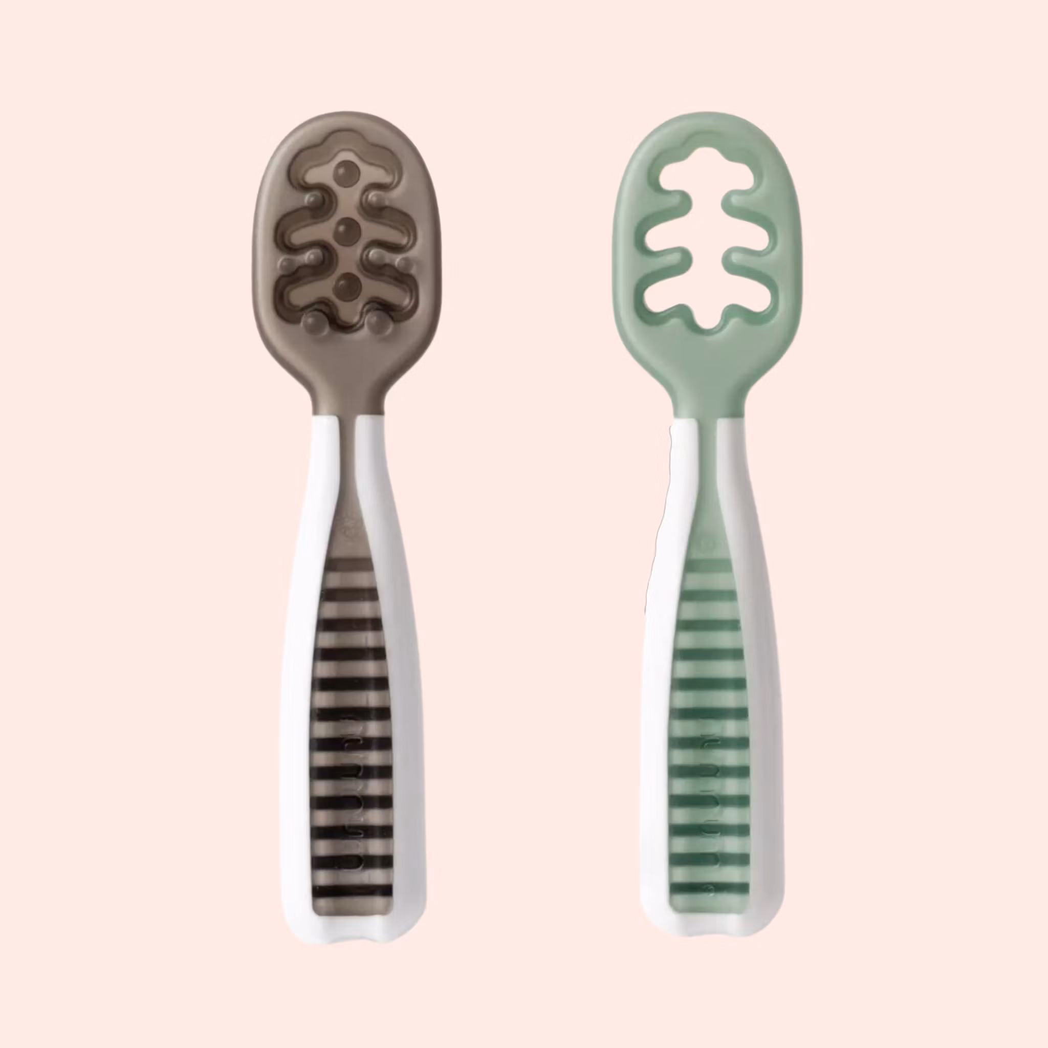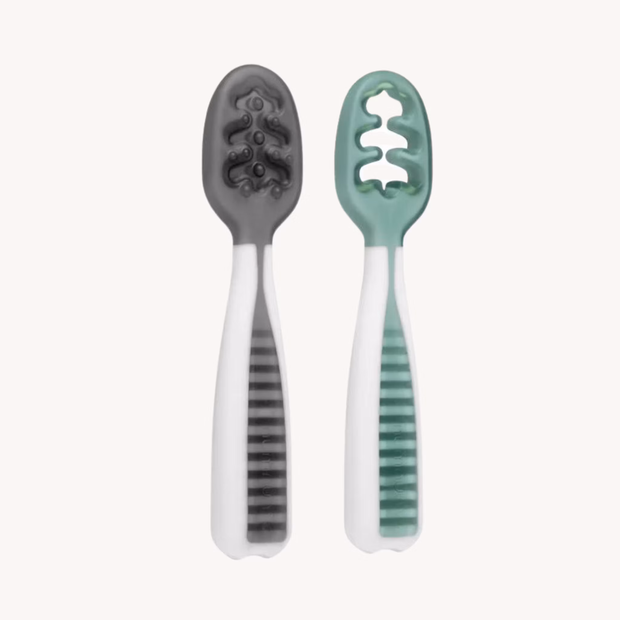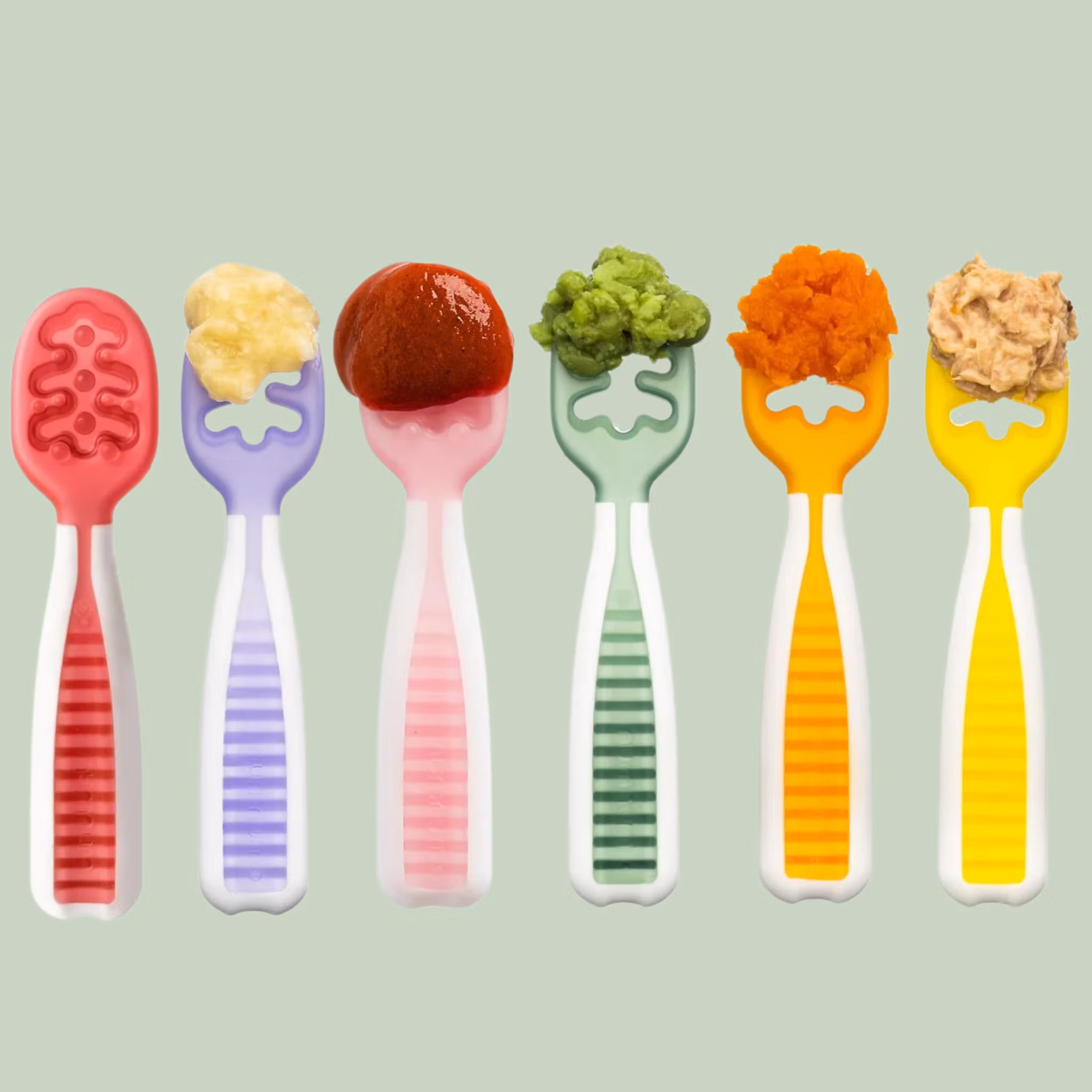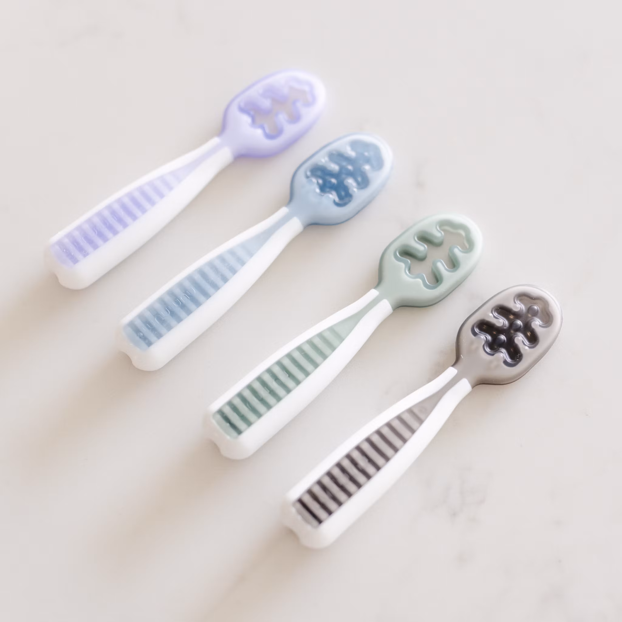 Pre spoons/nybörjarskedar som lämpar sig både till tunnare och tjockare konsistenser av mat. Till bebisar från 6+ månader.