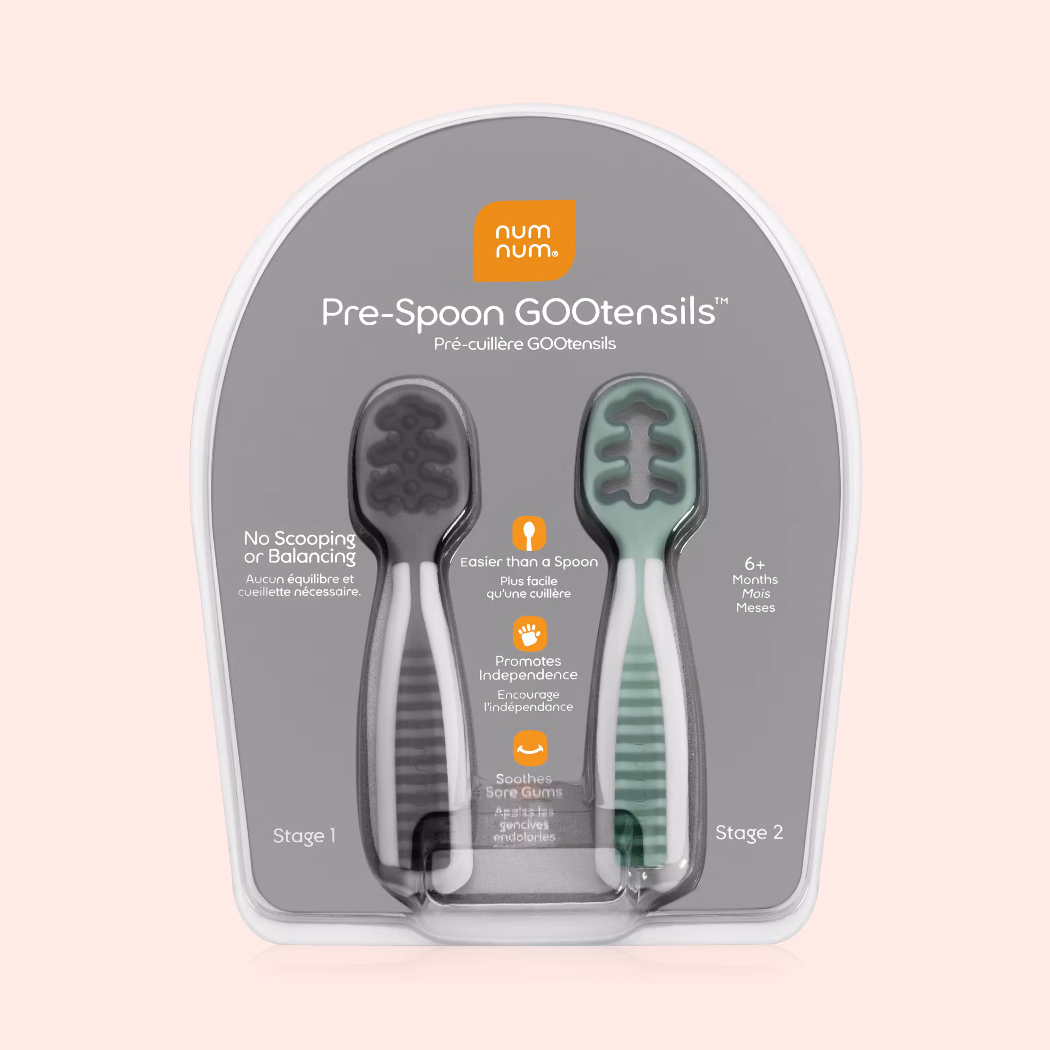 NumNum® Pre-Spoon GOOtensil™ var den första innovativa nybörjarskeden skapad för spädbarn som ännu inte utvecklat sin handledsrotation - en motorisk färdighet som brukar vara utvecklad runt ett barns tvåårsdag. NumNum® GOOtensil™ har vunnit flera utmärkelser för sin innovativa design, men desto roligare är hur deras skedar bidragit till flera glada föräldrar och självätande bebisar världen över!