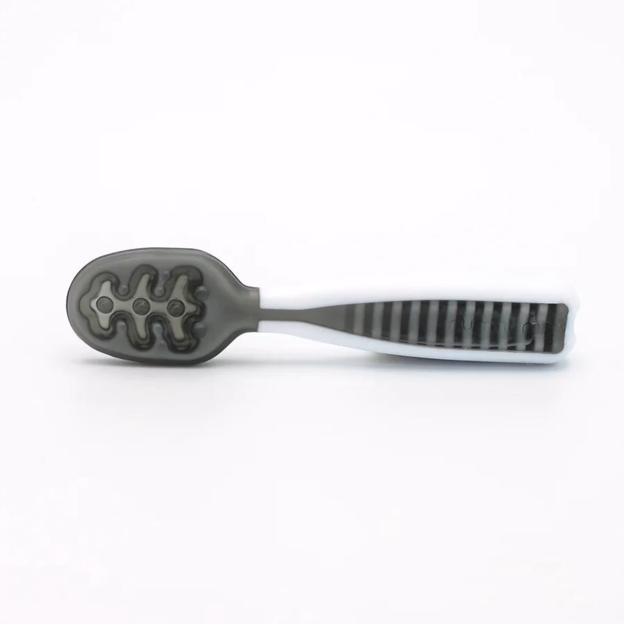 Steg 1-skeden har en textur som gör att skeden fångar upp precis tillräckligt med mat för att ge barnet en smak av maten, utan att det fastnar för mycket. Texturen på skeden gör den även skön för barnets ömma tandkött.