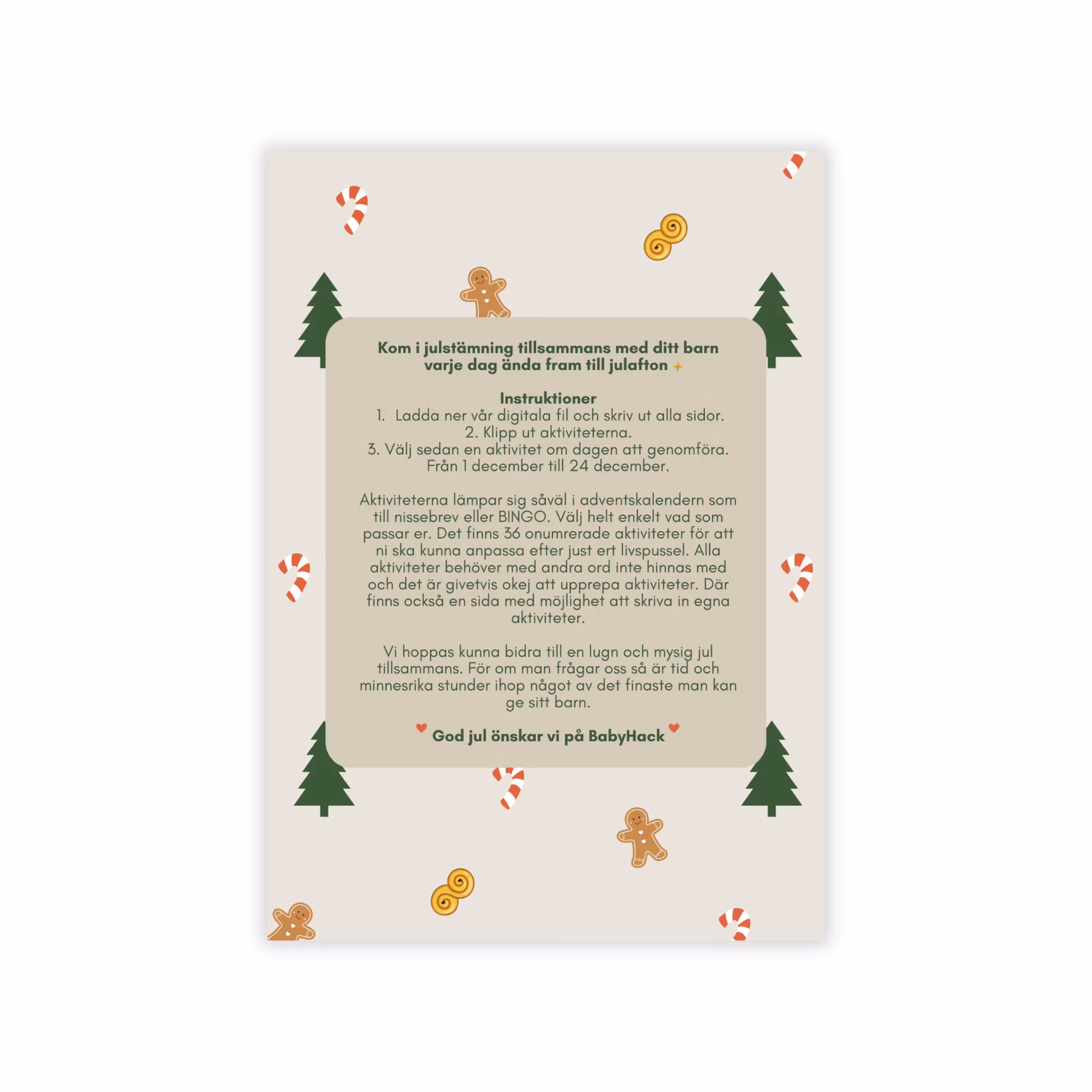 Digital produkt klar för utskrift: Juliga aktiviteter för hela familjen 2025. Perfekt i adventskalendern eller som Nissebrev.
