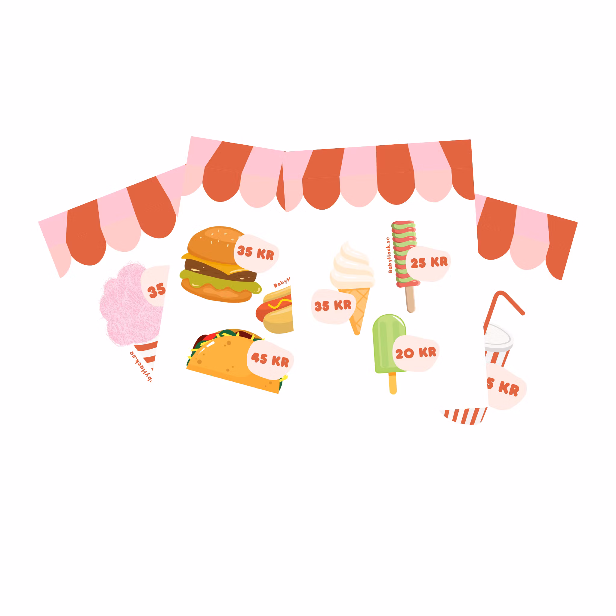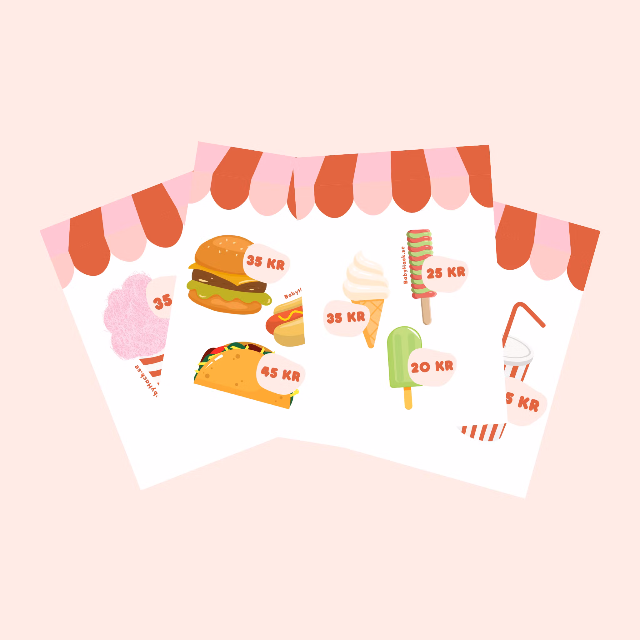 ✓ Kioskmenyer x4 till barnens lek.
