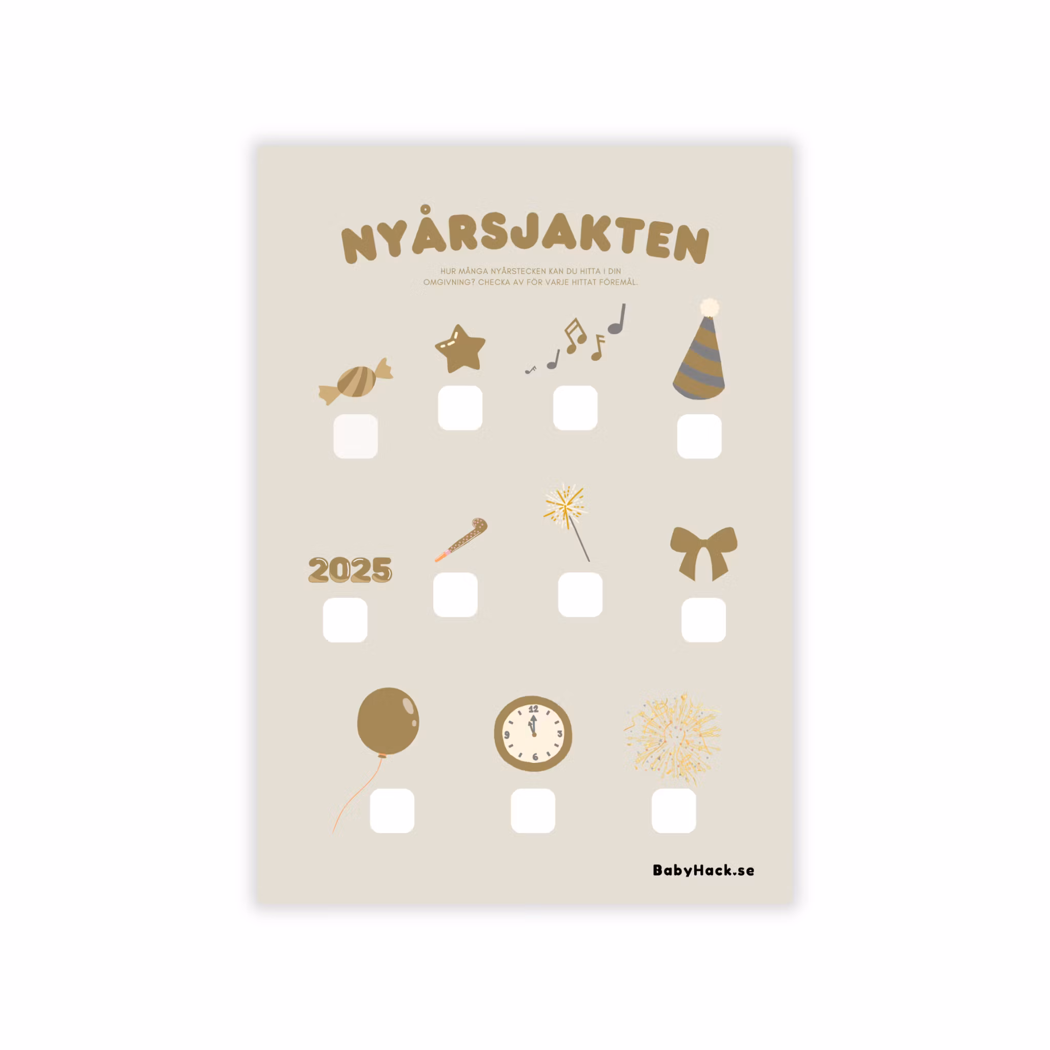 ✓ Leta efter föremålen i er omgivning. Gör det antingen till en lugn och harmonisk jakt eller också till en nyårstävling där den som hittar flest föremål snabbast vinner!