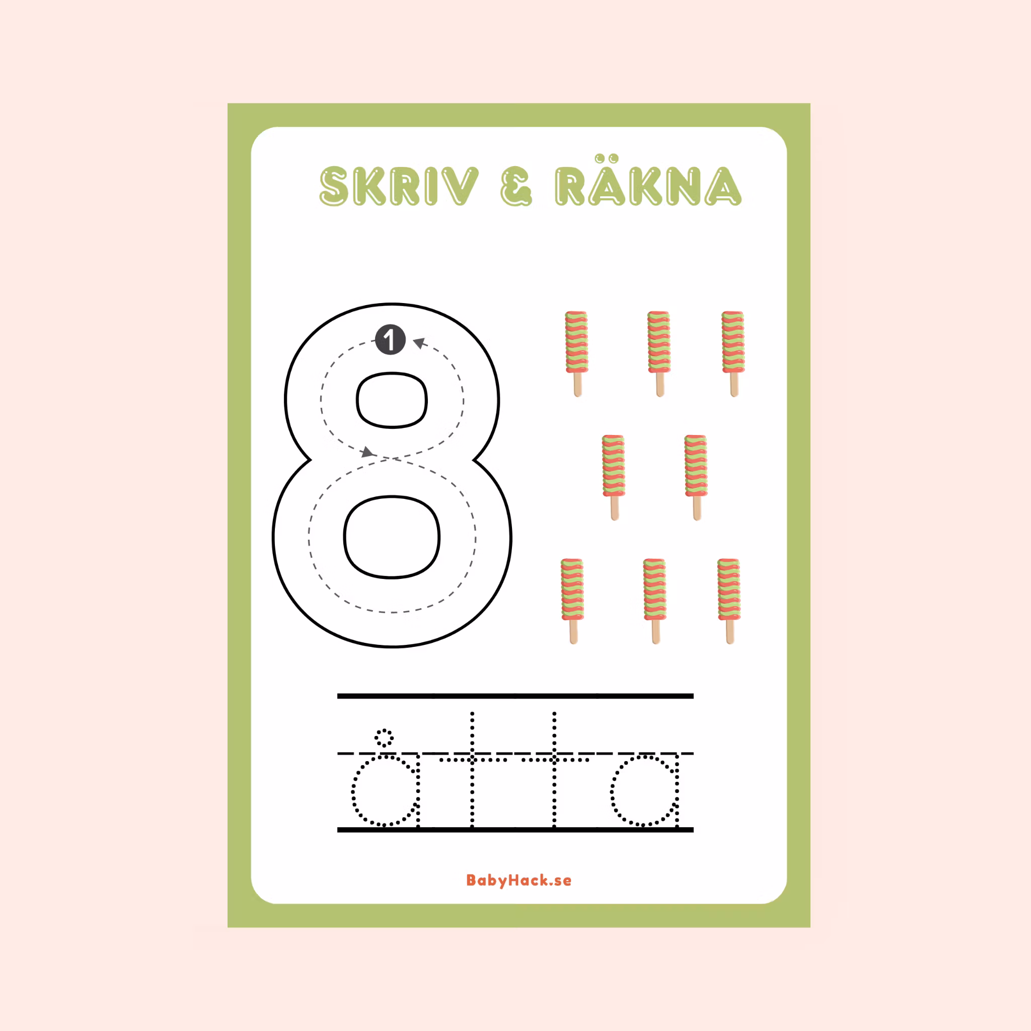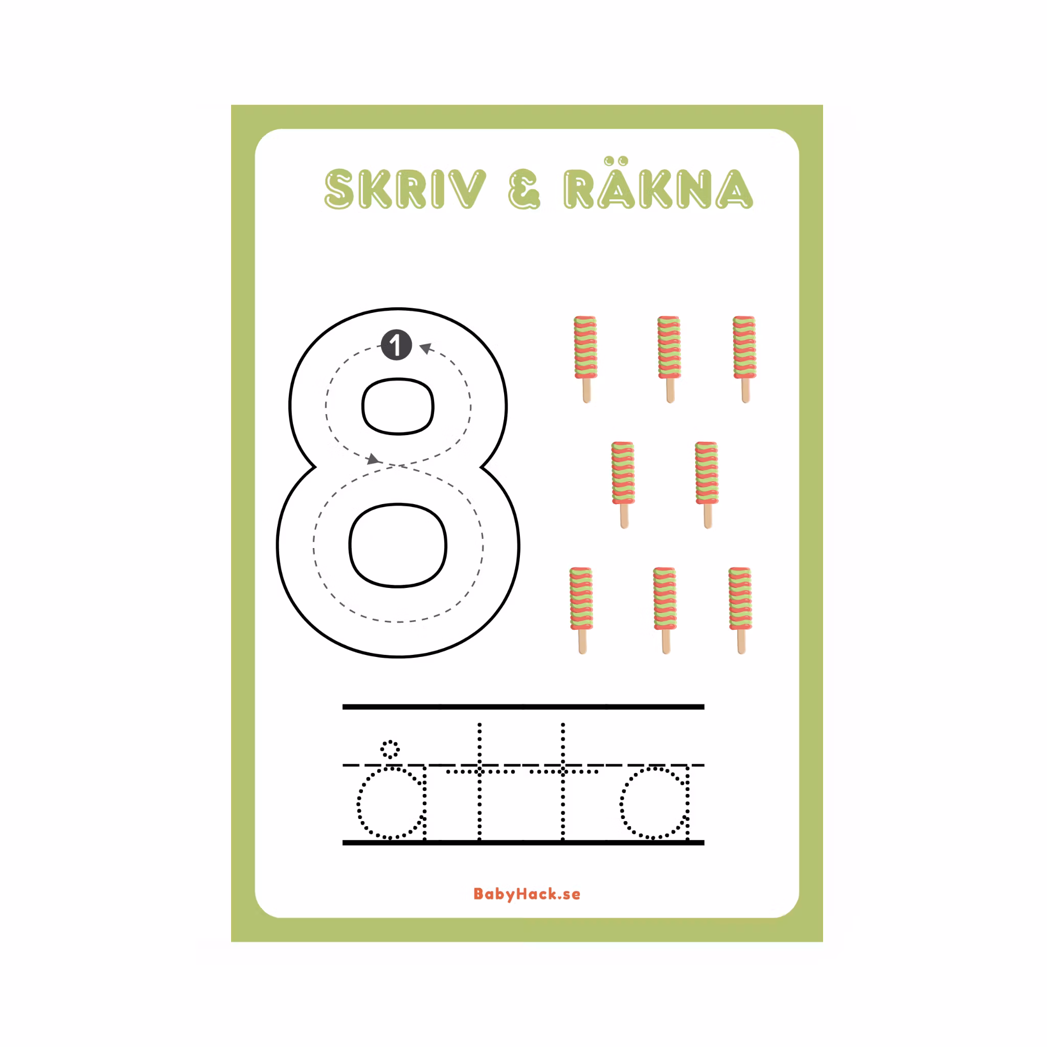 Digital produkt klar för utskrift: Öva på att skriva och räkna med vårt pyssel.
