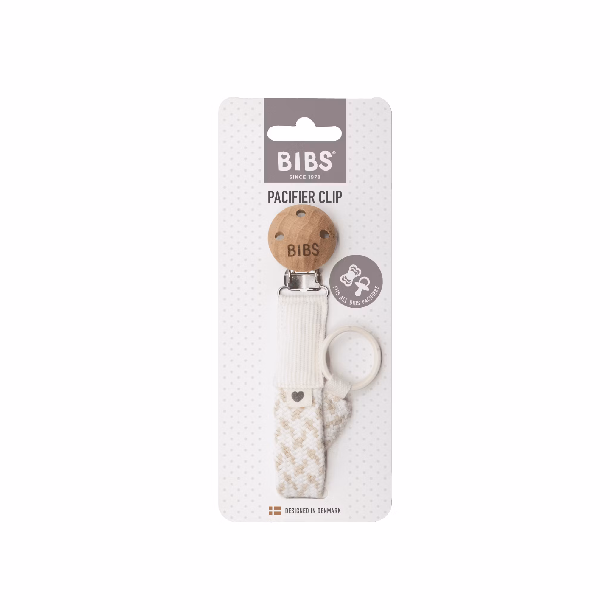BIBS nappband passar till alla napptyper och nappklämman är enkel att använda. Sätt fast metallklämman på en del av ditt barns kläder, så att inte nappen kommer bort eller blir smutsig av att ha tappats på marken eller golvet. BIBS napphållare kombinerar funktion med fin design, och finns i flera nyanser om du vill matcha BIBS nappar.