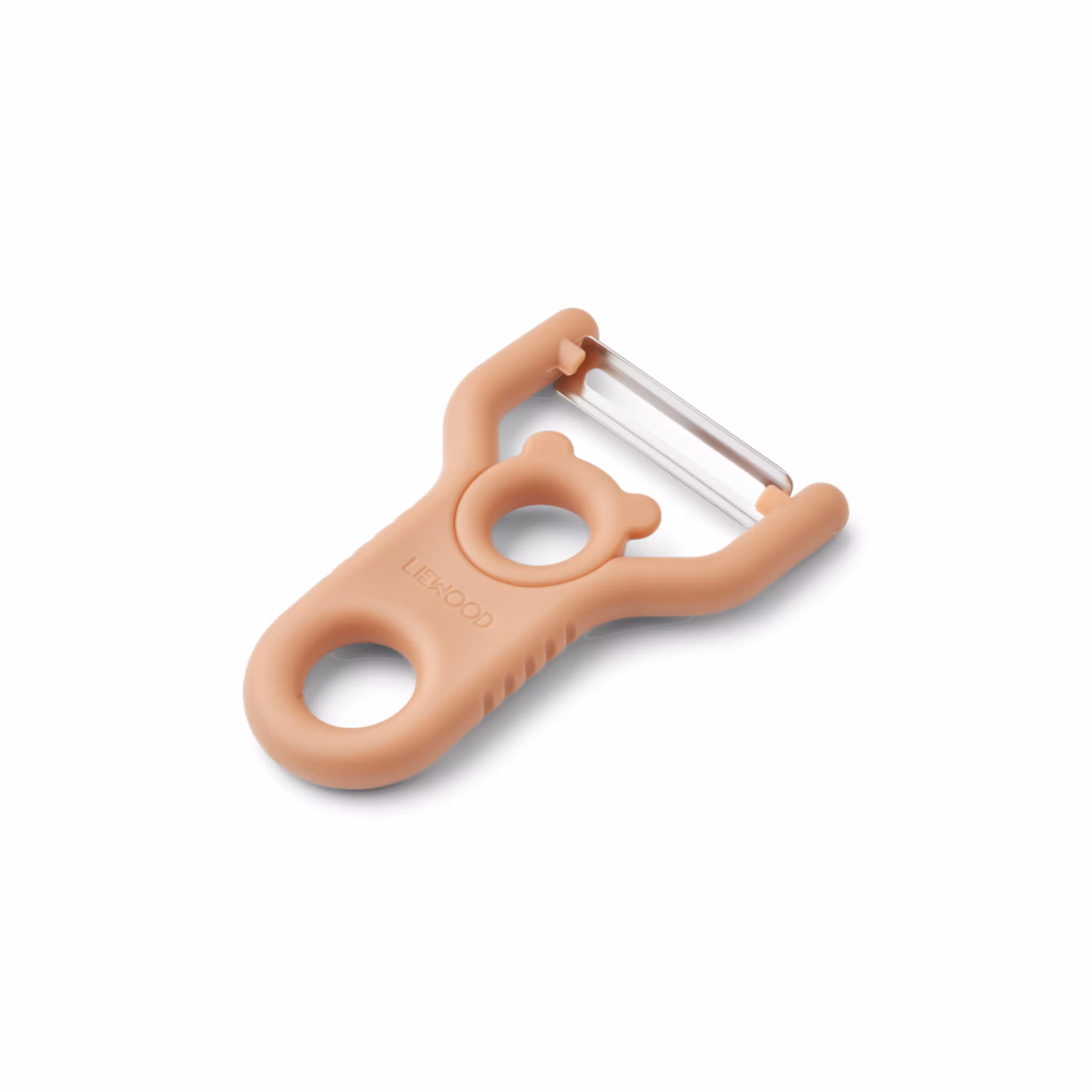 Skalare från Liewood designad till barn (5+ år). Liewood-skalaren är funktionell och har ett ergonomiskt handtag som gör den lätt för barnet att hålla i. Med den anpassade designen kan barnet bli en del av matlagningen och lära sig kökskunskaper på ett självständigt vis. Handtaget är specifikation av återvunnet ABS och bladen är i rostfritt stål. Skalaren tål maskindisk. Notera: skalaren är vass och inte en leksak.
