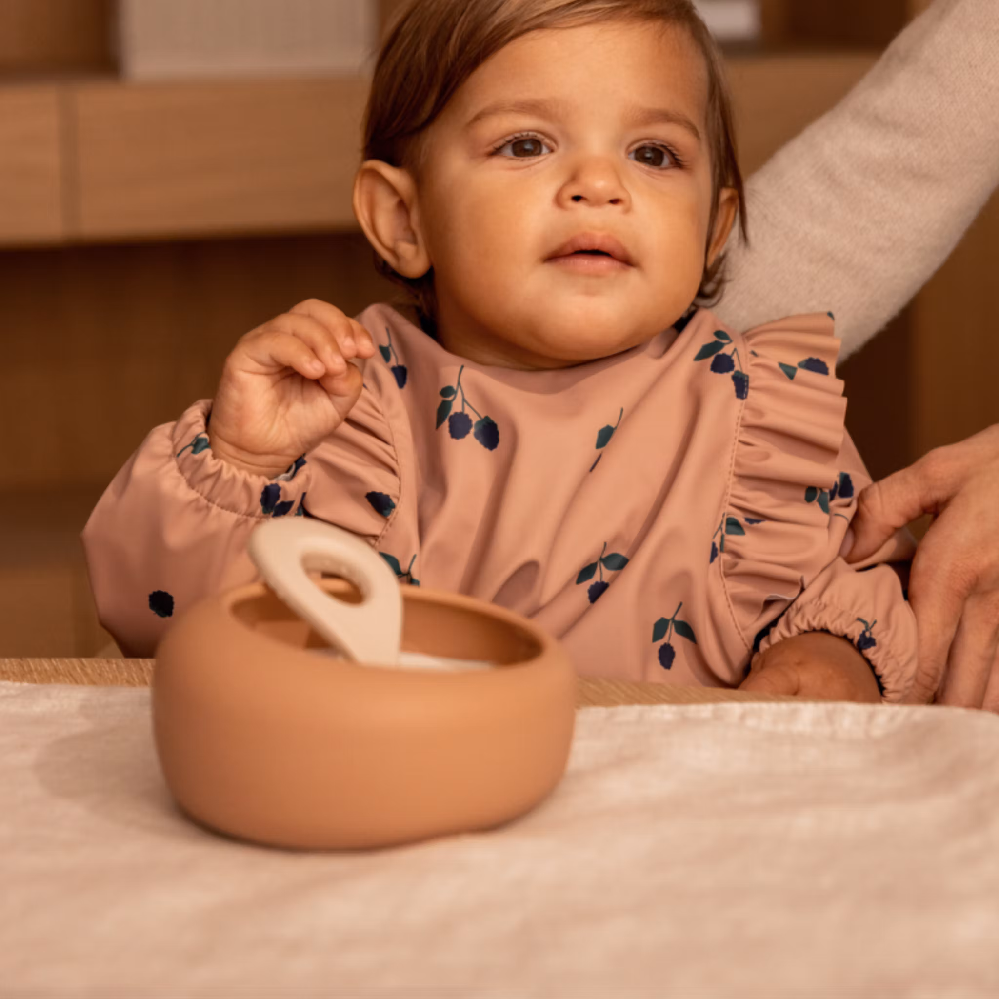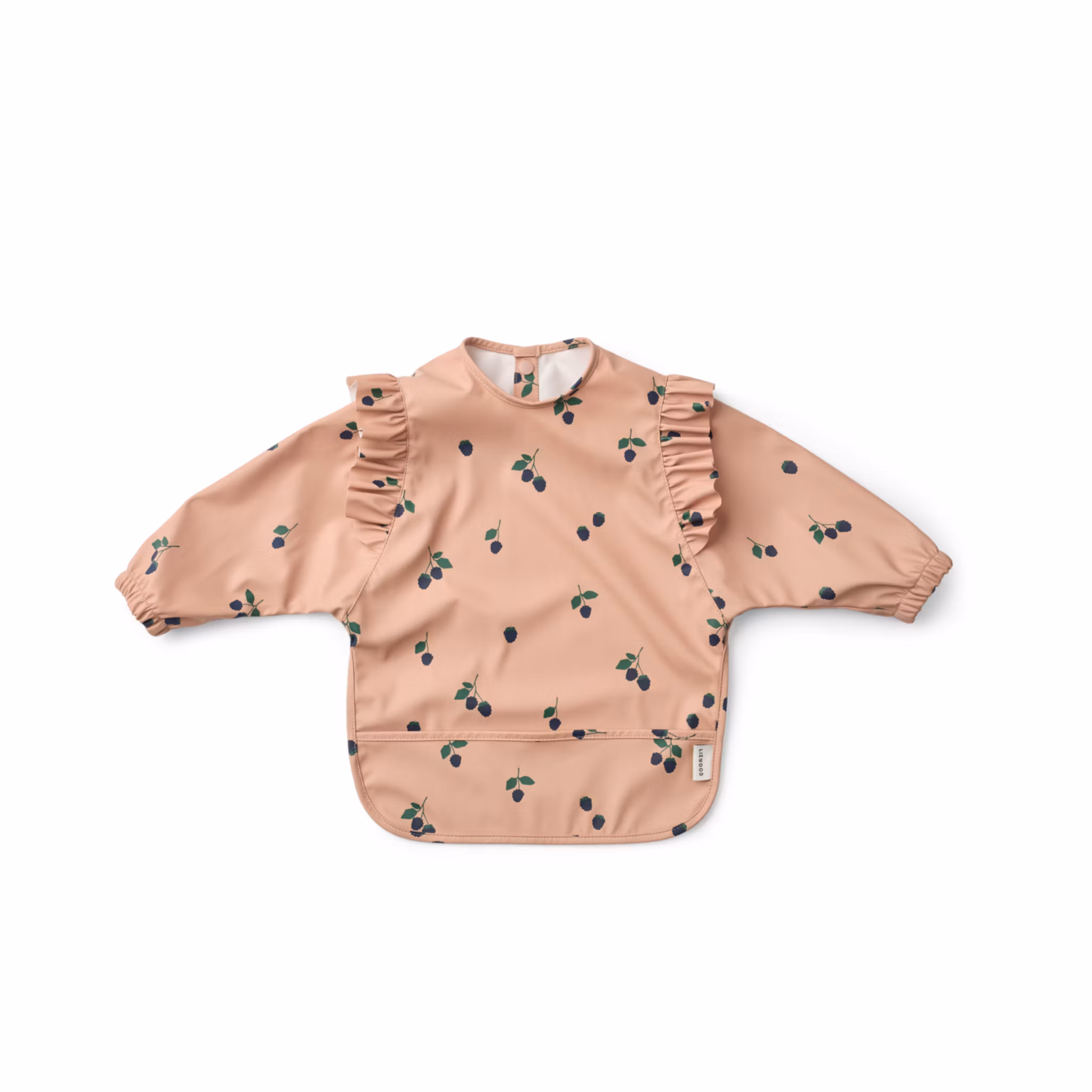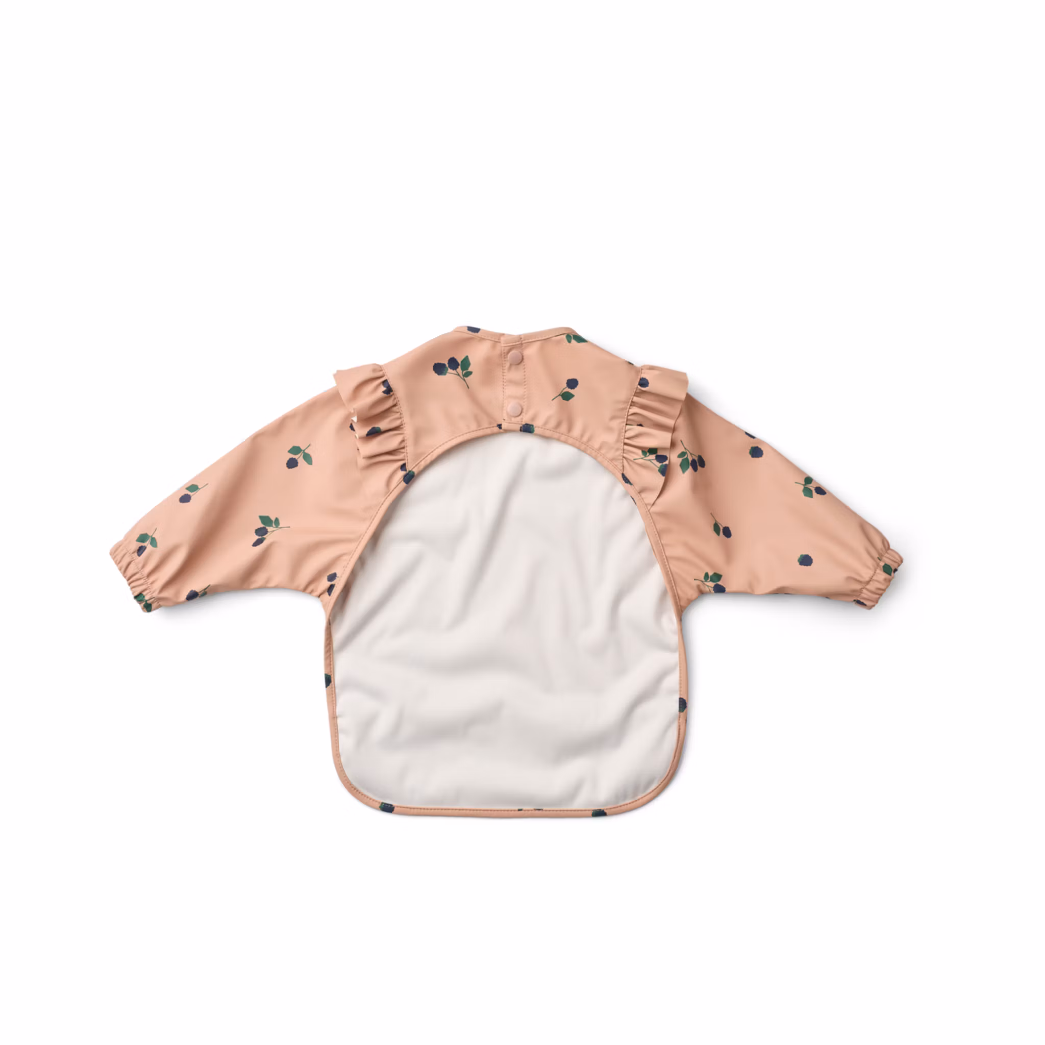 Haklapp med lång ärm och söta volanger - från Liewood. Den perfekta haklappen som garanterat skyddar ditt barns kläder under måltiden. Haklappen är vattentät, har långa ärmar och en ficka i nederkant som fångar upp matrester innan de hamnar i knät eller på golvet. Ärmsluten har resår som garanterar att inget kladd letar sig in innanför haklappen.Haklappen är lätt och skön att bära, och rengörs enkelt genom att torka eller skölja av den. Du kan även tvätta den i maskin vid behov. Merle är en haklapp med ärm som finns i flera färgvarianter.