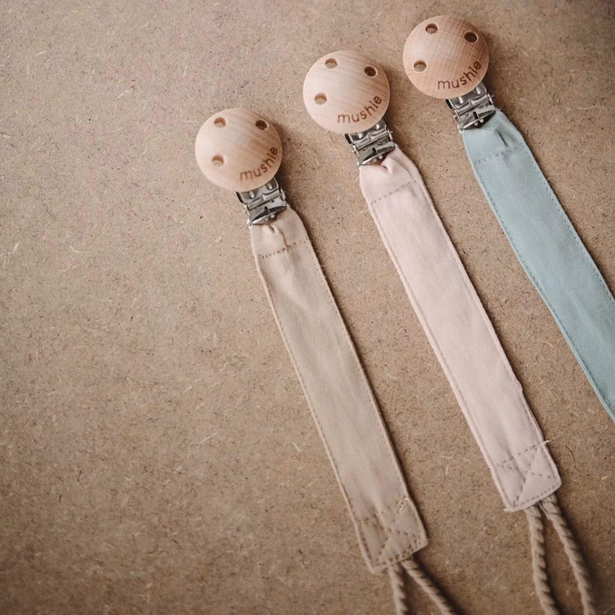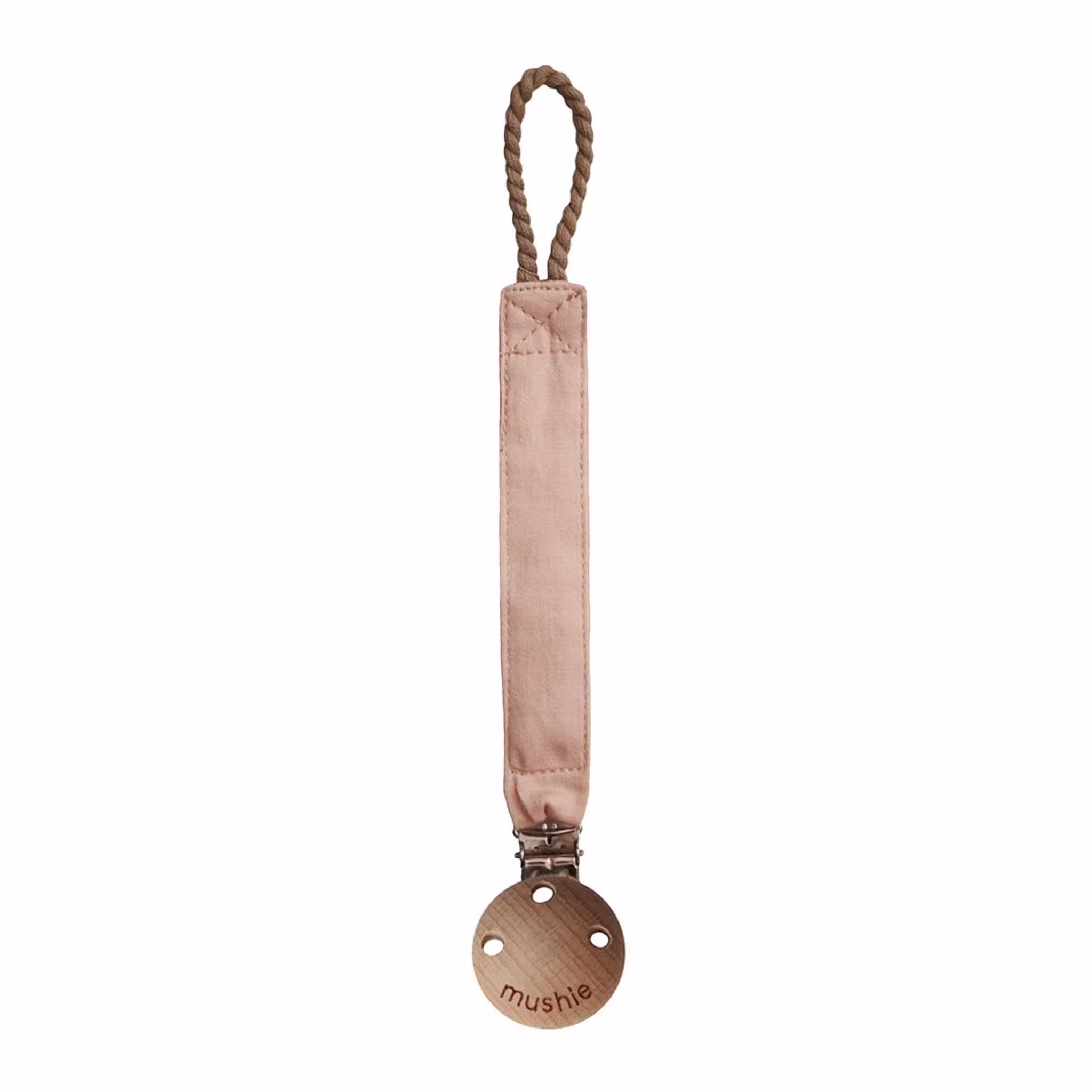 Napphållare från Mushie. Med en napphållare kommer barnets napp vara säkert fäst vid deras kläder så att den hela tiden är inom räckhåll. Napphållaren förhindrar att nappen tappas bort eller tappas på golvet då den hålls nära till hands. Perfekt till sovstunder i vagnen, babyskyddet eller när man önskar hålla lite extra koll på nappen. Träs enkelt genom nappens yttre sköld alternativt runt skölden. Passar alla nappmodeller.