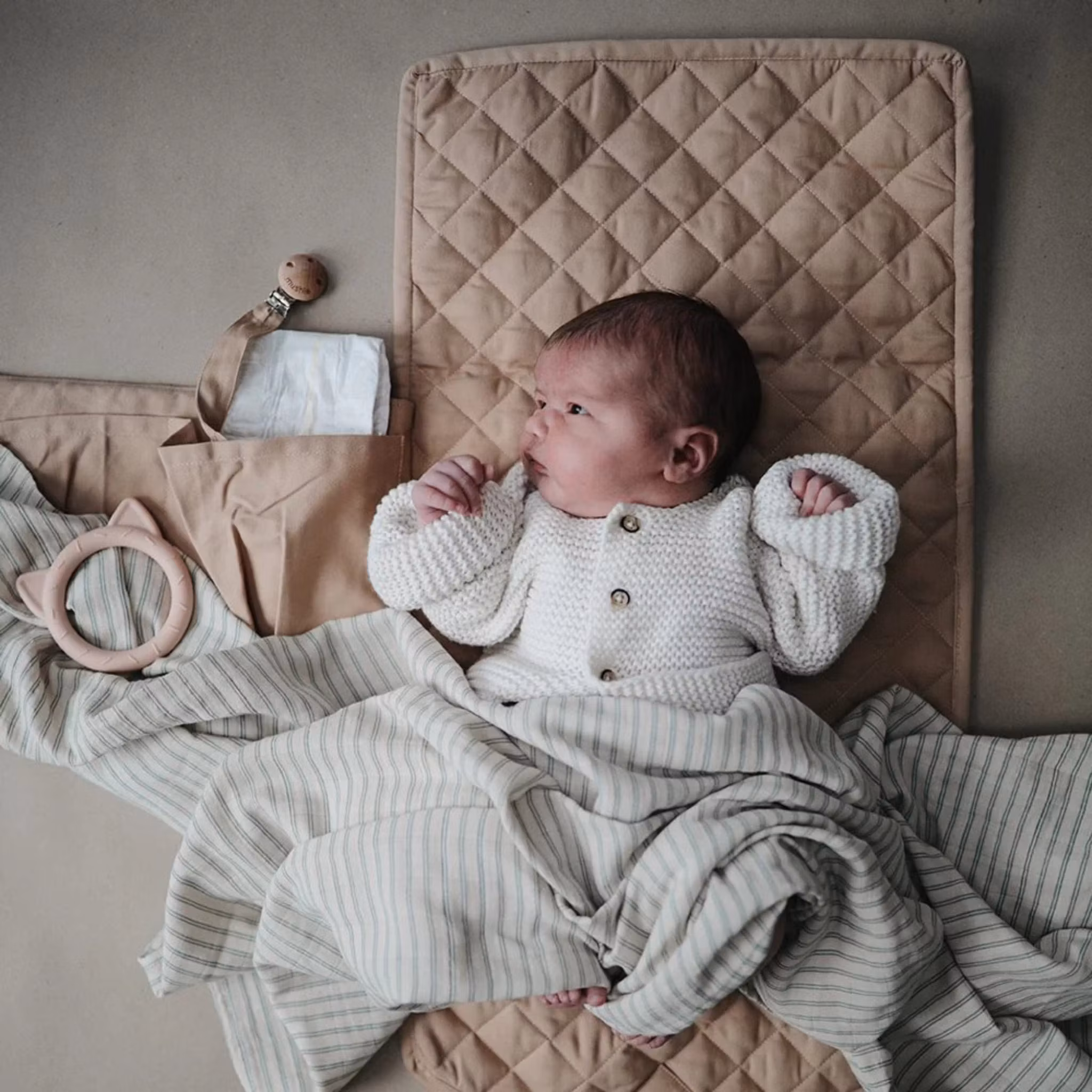 Napphållare i 100% ekologiskt tyg från Mushie. Rekommenderad ålder: 0+ månader.
