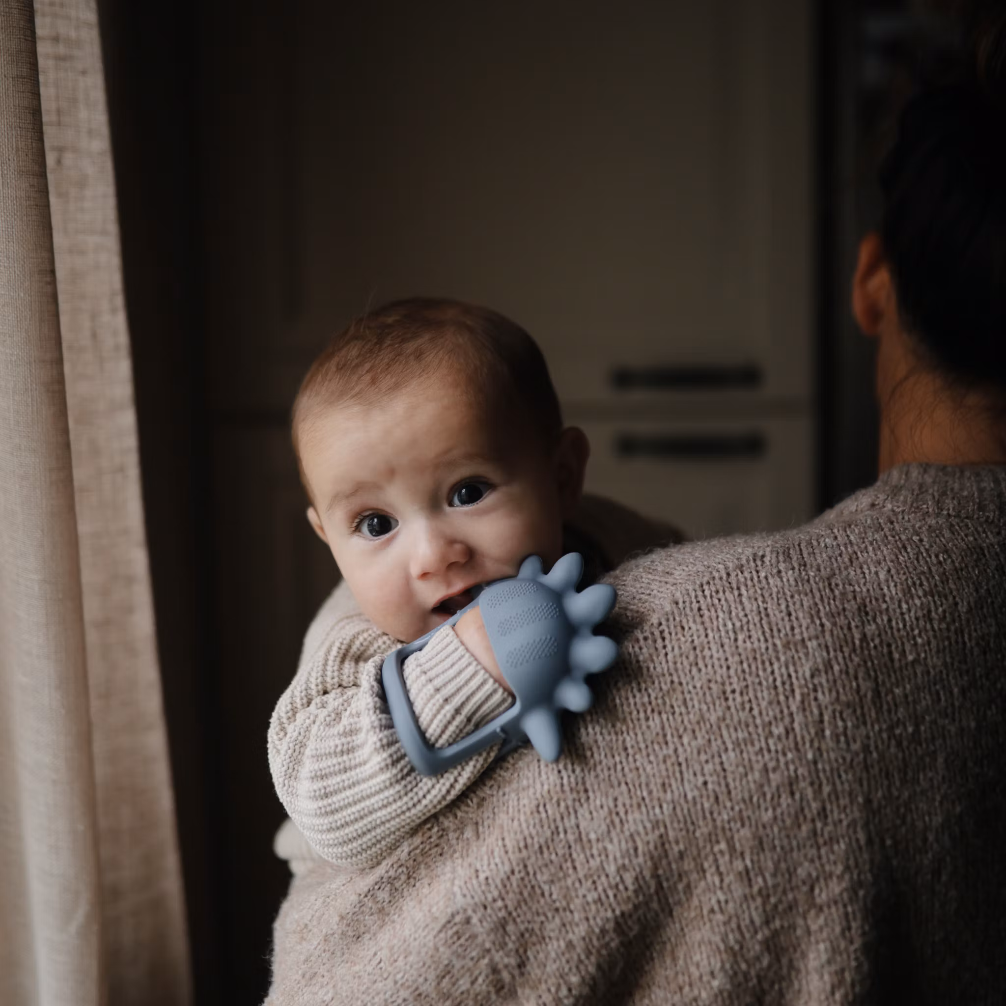 Bitleksak från Mushie med ett invändigt handtag som gör det enkelt för barn att ta tag i och greppa. Tack vare möjligheten till enkelt grepp kommer barnet på egen hand kunna utforska den strukturerade ytan och de mjuka kanterna. Bitleksaken är tillverkad av 100 % livsmedelsgodkänd silikon och är fri från BPA, PVC, BPs och ftalater. Helt säker för mun och tuggning!